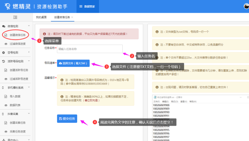 全自动智能化检测号码是否绑定微信,检测过程无需要你任何操作,自动按号码的不同状态分开时时保存,保证数据的完整性。